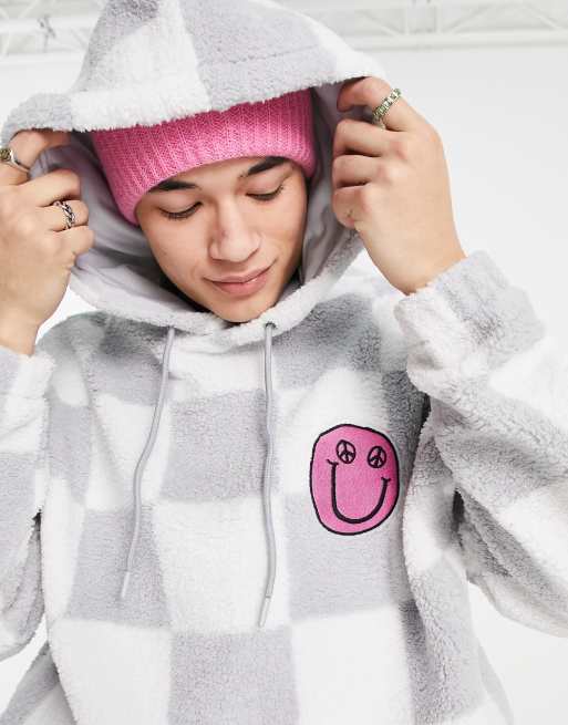ASOS DESIGN Felpa festival con cappuccio oversize in pile borg grigia e bianca a scacchi ASOS Very well made.