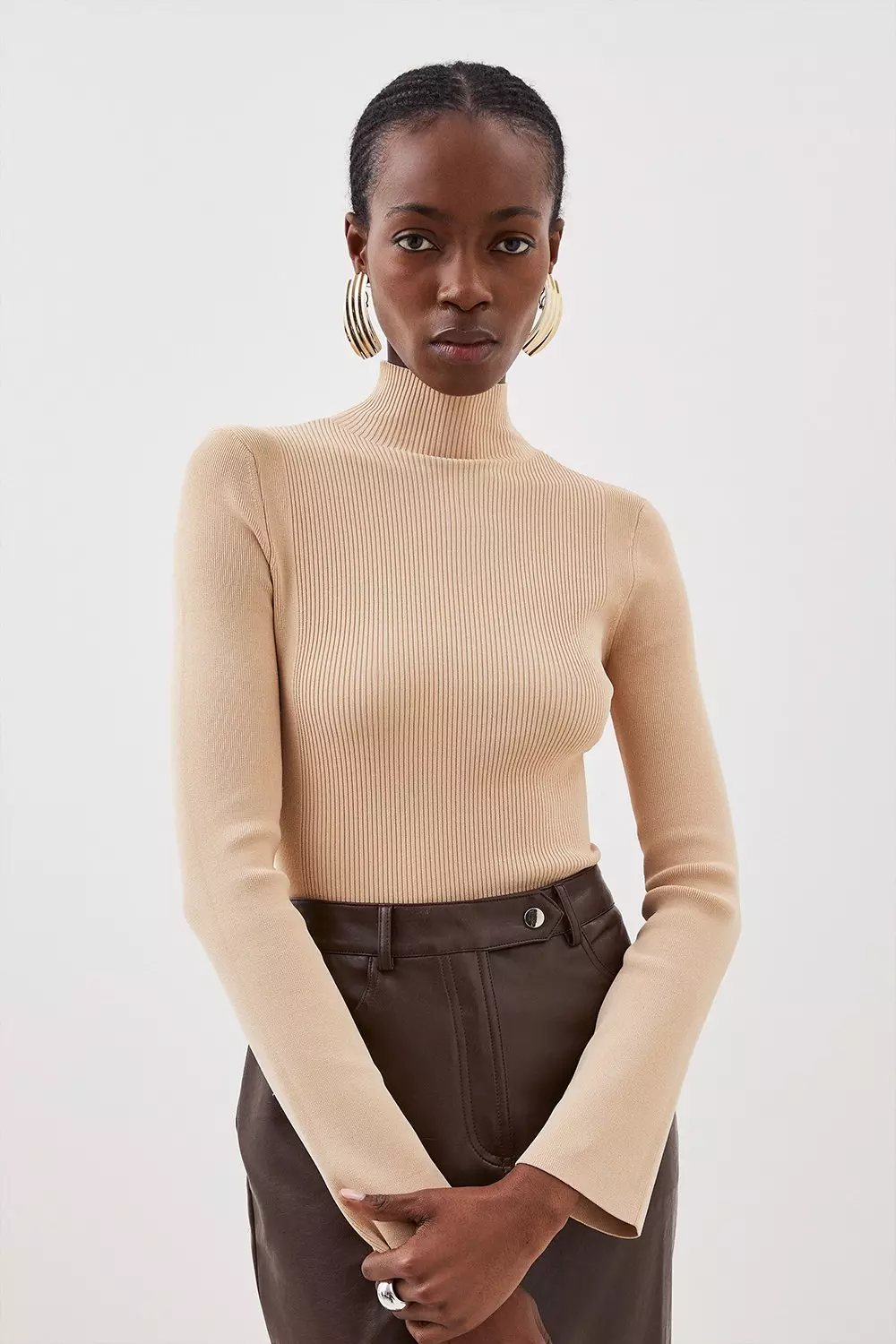 Ribbed Knitted Turtleneck Side Slit Sweater Beige NA KD Very well made.